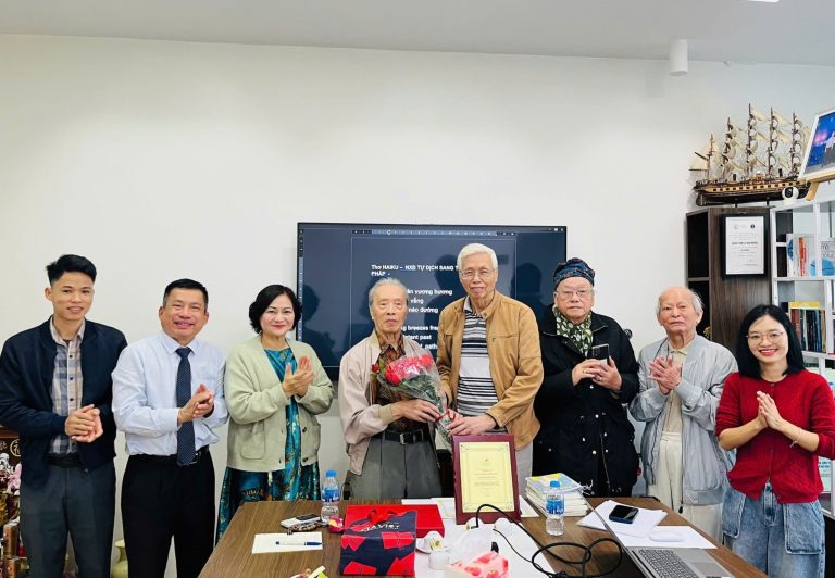Tặng hoa chúc mừng Haijin Đinh Nhật Hạnh- nguyên Chủ tịch CLB Thơ Haiku Việt Hà Nội